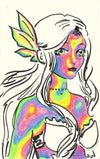 Original drawing by Charmaine Olivia from her personal sketchbook, featuring her mythical rainbow goddess named Iridia.